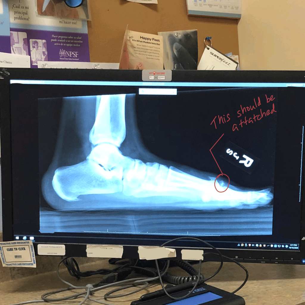 A tele-medicine appointment sent me to get an x-ray of my feet, and then a standing x-ray revealed that I did not have a bunion at all, rather I had this bone spur, this floating fragment of bone, and arthritis.